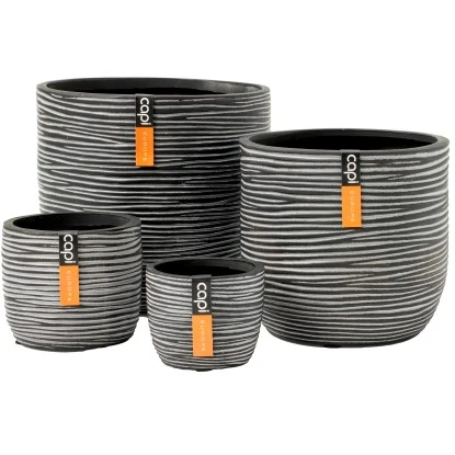 In der Capi Gemischte Box gibt es 4 Capi Nature Rib Blumentöpfe für im Hause. Nature Rib hat mit seiner Riffelstruktur eine besondere Ausstrahlung. Die Textur von Rib ist von geflochtenem Schilf mit seinen schmalen Linien inspiriert. Dies erzeugt ein rhythmisches Gefühl. Die Capi Nature Rib Indoor Töpfe sind handgefertigt und dies macht dass jeder Topf eine andere Ausstrahlung bekommt.