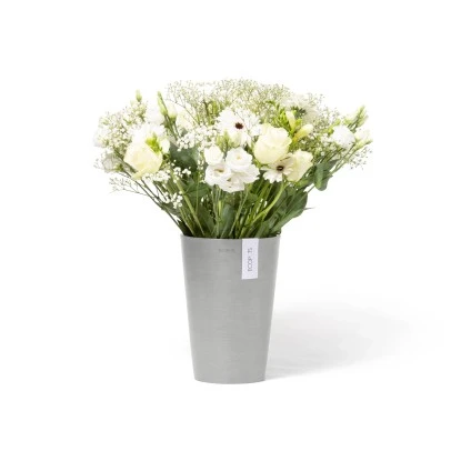 Die Ecopots Vase Pisa ist die perfekte Wahl für alle, die auf der Suche nach einer stilvollen und praktischen Vase sind. Mit ihrem gerundeten Innenboden und dem stabilen Boden bietet sie nicht nur eine einfache Reinigung, sondern auch ausreichend Platz für große Blumenarrangements.