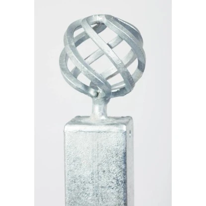 Der Eleo Eckpfosten mit Zirbel für Geländer in feuerverzinkt dient zur Verbindung zweier Geländerelemente über Eck. Der Pfosten besteht aus Vierkantrohr und bietet eine funktionelle und stabile Befestigungsmöglichkeit. Gekrönt wird er von einem eleganten Abschluss in Form einer aufwendig gearbeiteten Zirbel.