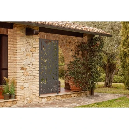 Holen Sie sich karibisches Flair in Ihren Garten: Der Eleo Sichtschutz Tanaro aus Metall mit Pulverbeschichtung in Anthrazit (DB703) besticht mit einem abstrakten Palmenblätter-Design. Aufwendig von Hand aus massivem Metall geschmiedet ist Tanaro witterungsbeständig und formstabil. Die edle Sichtschutzwand schützt zuverlässig vor neugierigen Blicken.