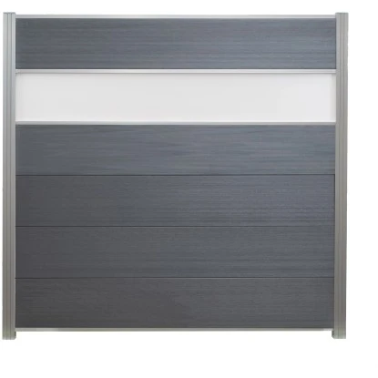 Das elephant Acrylglas-Element Cora Line ist aus satiniertem Acrylglas und Aluminium gefertigt (hell eloxiert). Es handelt sich um Zubehör für WPC-Steckzäune (Cora Line).