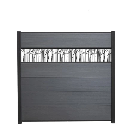 Das elephant Alu-Dekorelement Cora Line im Wald-Design ist aus Aluminium gefertigt und Anthrazit pulverbeschichtet. Es handelt sich um Zubehör für WPC-Steckzäune (Cora Line).