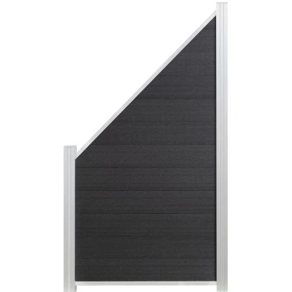 Bitte beachten Sie: Die Abbildung zeigt alle benötigten Elemente für einen als Schrägelement montierten Cora Line Zaun. Das hier angebotene Set umfasst jedoch nur die Anfangs- und Endleiste.