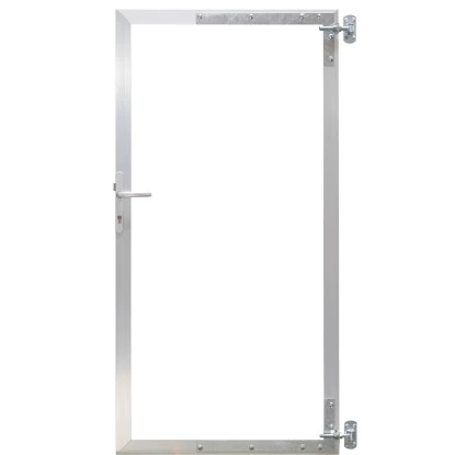 Das elephant® Türrahmen-Set Alu für Elementzäune ist ein Zauntor inklusive Lappenbändern, Schloss, PZ-Schließzylinder, Türgriff und Beschlägen, aber ohne Füllung.