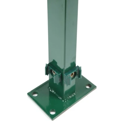 Die Eckpfosten mit einer Abmessung von 60 mm x 40 mm und angeschweißter Bodenplatte eignen sich für betonierte Untergründe und ebene Mauern. Einsetzbar für Zaunmatten mit einer Höhe von 63 cm.
