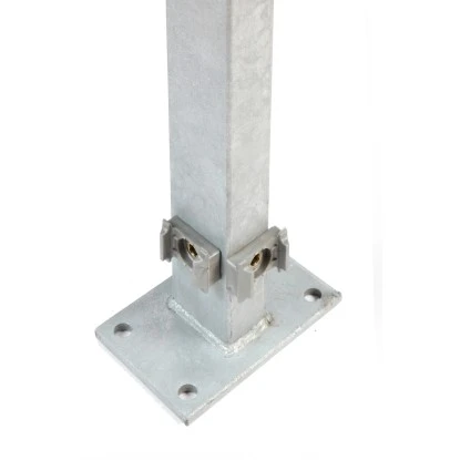 Die Eckpfosten mit einer Abmessung von 60 mm x 40 mm und angeschweißter Bodenplatte eignen sich für betonierte Untergründe und ebene Mauern. Einsetzbar für Zaunmatten mit einer Höhe von 63 cm.