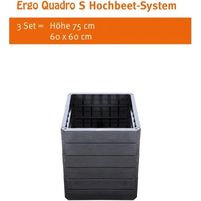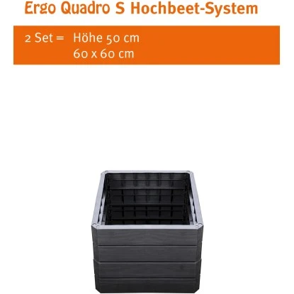 Das Ergo Quadro Hochbeetsystem ist ein preiswertes, modular konzipiertes Hochbeet und ermöglicht Ihnen den Aufbau eines an Ihre Bedürfnisse und Platzverhältnisse angepasstes Hochbeet Außerdem bietet es vielfältige Gestaltungsmöglichkeiten durch platzsparende und kompakte Ausführung. Das Hochbeet kann auch multifunktional als offener Komposter oder Kräuterhochbeet genutzt werden. Durch die Befüllung mit Kompost und Gartenerde entsteht ein idealer Nährboden für die Pflanzenanzucht. Dank des guten Klimas im Inneren des Hochbeets können Pflanzen schneller reifen – unabhängig von der eigentlichen Bodenbeschaffenheit in Ihrem Garten.
