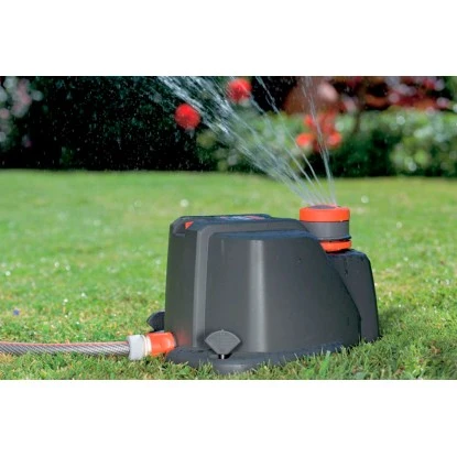 Die Bewässerungsanlage ist nicht nur für Ihre runden und quadratischen Flächen geeignet. Die 50 speicherbaren Kontureneckpunkte der Sprinkleranlage bewässern Ihre individuellen Rasenformen hervorragend. Sie können die Wurfweite variabel von 2,5 bis zu 9 m anpassen und dauerhaft programmieren, hierzu benötigen Sie einen Wasserdruck von 2 bar. Mit einem Wasserdruck von 4 bar können Sie eine Wurfweite von 4 bis zu 10,5 m erreichen. Den Beregnungssektor können Sie mit dem Gardena Rasensprenger zwischen 25 und 360 Grad einstellen.