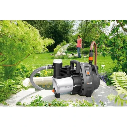 Die Gardena Gartenpumpe ist auf Grund des 5-stufigen Pumpenlaufwerkes extra leise und besonders. Sie hat eine anwendungsorientierte Sicherheitsausstattung für Haus und Garten. Vielseitig einsetzbar: Zum Bewässern, zur Druckverstärkung, zum Um- und Auspumpen von Leitungs- und Regenwasser sowie chlorhaltigem Schwimmbadwasser. Nicht gefördert werden dürfen Salzwasser, aggressive und leicht brennbare Stoffe sowie Lebensmittel. Mit safe-pump Funktion: 1. LED-Zustandsanzeige mit Warnfunktion. 2. Automatische Sicherheitsabschaltung. 3. Integrierte Trockenlaufsicherung. Integrierter Vorfilter verhindert Beschädigungen in der Pumpe. Hohe Sicherheit und lange Lebensdauer durch Keramikabdichtung und doppeltes Dichtungssystem zwischen Motor und Pumpenlaufwerk. Überlastungsschutz durch Thermoschutzschalter. Geräuschdämmende Gummifüße. Bequemer Tragegriff. Große Einfüllöffnung. Mit doppeltem Ausgang (einer schwenkbar) zum gleichzeitigen Betrieb von 2 Anschlussgeräten. Separate Wasserablassschraube zum Entleeren der Pumpe bei Frostgefahr. Anschlussgewinde 33,3 mm (G1).