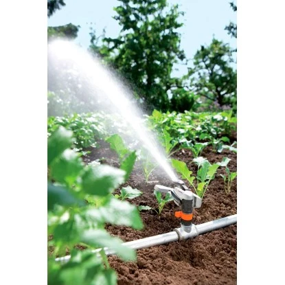 Der Sprinkler lässt sich mit einem Stativ oder einer Rohrleitung kombinieren. Diese Artikel sind separat erhältlich.