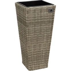 Der Pflanzkübel Polyrattan ist ein Pflanzgefäß für den Innen- und Außenbereich und setzt dekorative Akzente im Haus, auf der Terrasse oder im Garten. Das Pflanzgefäß ist aus einem hochwertigen PE-Kunststoffgeflecht hergestellt, das über einen rostbeständigen Alu-Rahmen gewebt ist. Die Faser ist UV- und temperaturbeständig, langlebig und pflegeleicht. Der Kunststoffeinsatz kann bequem außerhalb des Gefäßes bepflanzt und dann eingesetzt werden und bietet mit einer Größe von 26 cm x 26 cm x 30 cm auch für größere Pflanzen ausreichend Platz. Gegenüber Einsätzen aus anderen Materialien bietet dieser den Vorteil, nicht zu rosten und absolut wasserdicht zu sein. Bei Außenaufstellung einfach ein Loch in den Boden bohren, um Staunässe zu vermeiden.