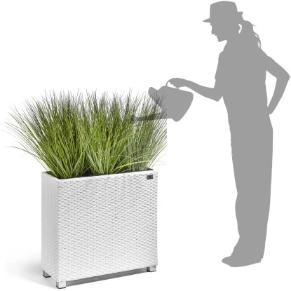 Gartenfreude Raumteiler Pflanzkübel Polyrattan 76 Cm X 26 Cm Weiß Mit Alu-Füßen