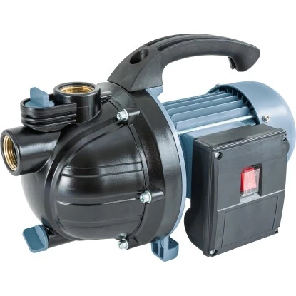 Um eine möglichst hohe Wasserförderung zu erreichen, ist der Einsatz eines Gartenschlauches von 19 mm Ø (3/4″) empfehlenswert. Ansaugseitig ist ein Saugschlauch von mindestens 19 mm Ø (3/4″) bis 25 mm Ø (1″) und einem integrierten Rückschlagventil zu verwenden. Die Anschlüsse an der Gartenpumpe für die Saug- und Abgangsleitung haben ein Innengewinde mit einem Ø von 30,3 mm (G1). Mit einem Gehäuse und Pumpenkopf aus schlagfestem Kunststoff ist die Pumpe besonders robust. Der Kopf verfügt über messingverstärkte Gewinde. Über den spritzwassergeschützten Ein- und Ausschalter können Sie die Pumpe bedienen. Ein breiter Standfuß gewährt einen sichern Stand beim Betrieb der Pumpe. Für den einfachen Transport hat sie einen praktischen Tragegriff. Vor dem Transport der Gartenpumpe können Sie diese über die Ablassschraube einfach und schnell entleeren. Ein Vorfilter schützt die Pumpe vor Verschmutzungen und erhöht die Lebensdauer. Der Filter kann separat erworben werden.