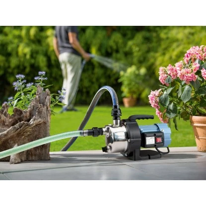 Diese hochwertige Gartenpumpe bietet universelle Einsatzmöglichkeiten und lässt sich ideal zur kostengünstigen und umweltfreundlichen Bewässerung Ihres Gartens mit Regenwasser verwenden. Auch für den Betrieb von Beregnungsanlagen ist sie geeignet. Mit ihrer Leistung von 800 W und einem Druck von 4 bar lässt sich die Pumpe auch in größeren Gärten nutzen. Durch die Ansaughöhe von bis zu 7 m können Sie auch tief gelegene Brunnen gut erreichen. Die maximale Förderhöhe beträgt 40 m, bei einer hohen Förderkapazität von 3.700 l/h.