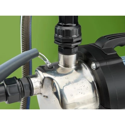 Hergestellt mit einem Gehäuse aus Edelstahl überzeugt die Gartenpumpe durch eine langlebige und solide Qualität. Als praktisches Feature verfügt sie über einen Saugschlauch, der zum Ansaugen des Wassers durch die Pumpe dient. Seine Länge misst 4 m. Für Flexibilität ist die Gartenpumpe neben dem Anschluss für den Saugschlauch mit zwei weiteren Anschlüssen auf der Druckseite versehen.