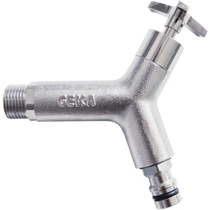 Der Geka plus-Design-Wasserhahn mit Geka plus-Anschlussstecker ist mit allen gängigen Stecksystemen und Schlauchtypen kombinierbar. Er ost absolut langlebig und einfach zu bedienen. Ideal für Garten, Haus und Werkstatt.