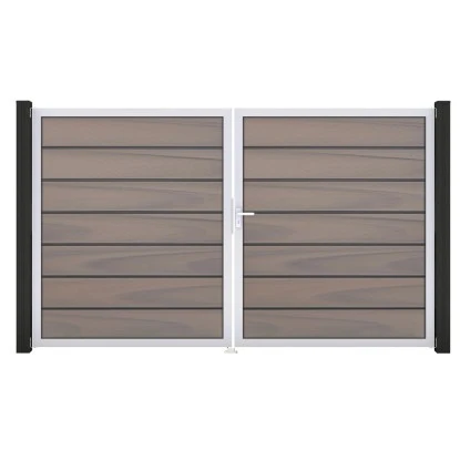 Alle Bestandteile des Tors sind aus hochwertigen Materialien gefertigt, die Wind und Wetter trotzen und garantiert rostfrei sind. Das Tor ist 2-flügelig und wird inklusive Beschlagset geliefert. Das BPC-Profil und der Aluminium-Rahmen machen das Tor besonders witterungsbeständig und langlebig. Zudem ist es pflegeleicht und einfach zu reinigen.
