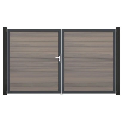 Alle Bestandteile des Tors sind aus hochwertigen Materialien gefertigt, die Wind und Wetter trotzen und garantiert rostfrei sind. Das Tor ist 2-flügelig und wird inklusive Beschlagset geliefert. Das BPC-Profil und der Aluminium-Rahmen machen das Tor besonders witterungsbeständig und langlebig. Zudem ist es pflegeleicht und einfach zu reinigen.