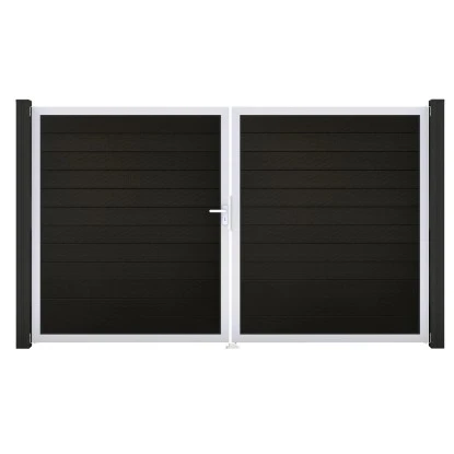 Alle Bestandteile des Tors sind aus hochwertigen Materialien gefertigt, die Wind und Wetter trotzen und garantiert rostfrei sind. Das Tor ist 2-flügelig und wird inklusive Beschlagset geliefert. Das BPC-Profil und der Aluminium-Rahmen machen das Tor besonders witterungsbeständig und langlebig. Zudem ist es pflegeleicht und einfach zu reinigen.