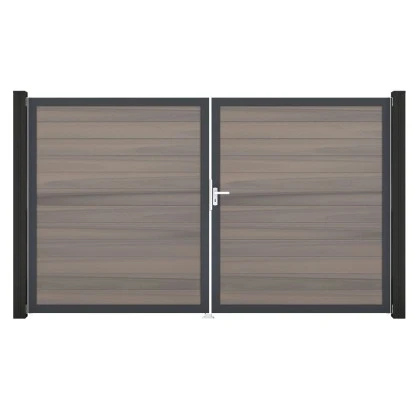 Alle Bestandteile des Tors sind aus hochwertigen Materialien gefertigt, die Wind und Wetter trotzen und garantiert rostfrei sind. Das Tor ist 2-flügelig und wird inklusive Beschlagset geliefert. Das BPC-Profil und der Aluminium-Rahmen machen das Tor besonders witterungsbeständig und langlebig. Zudem ist es pflegeleicht und einfach zu reinigen.