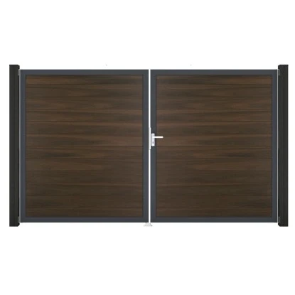 Alle Bestandteile des Tors sind aus hochwertigen Materialien gefertigt, die Wind und Wetter trotzen und garantiert rostfrei sind. Das Tor ist 2-flügelig und wird inklusive Beschlagset geliefert. Das BPC-Profil und der Aluminium-Rahmen machen das Tor besonders witterungsbeständig und langlebig. Zudem ist es pflegeleicht und einfach zu reinigen.