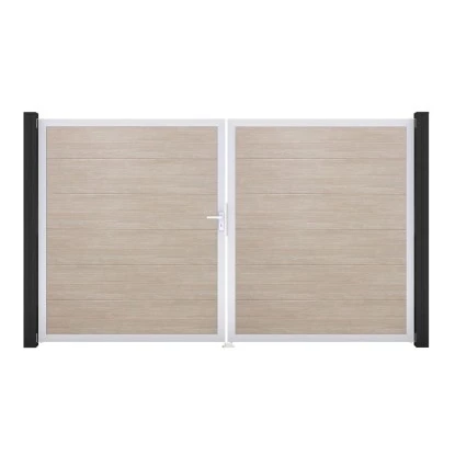 Alle Bestandteile des Tors sind aus hochwertigen Materialien gefertigt, die Wind und Wetter trotzen und garantiert rostfrei sind. Das Tor ist 2-flügelig und wird inklusive Beschlagset geliefert. Das BPC-Profil und der Aluminium-Rahmen machen das Tor besonders witterungsbeständig und langlebig. Zudem ist es pflegeleicht und einfach zu reinigen.