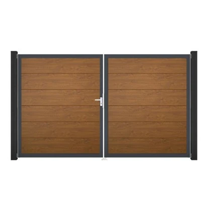 Alle Bestandteile des Tors sind aus hochwertigen Materialien gefertigt, die Wind und Wetter trotzen und garantiert rostfrei sind. Das Tor ist 2-flügelig und wird inklusive Beschlagset geliefert. Das BPC-Profil und der Aluminium-Rahmen machen das Tor besonders witterungsbeständig und langlebig. Zudem ist es pflegeleicht und einfach zu reinigen.