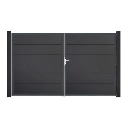 Alle Bestandteile des Tors sind aus hochwertigen Materialien gefertigt, die Wind und Wetter trotzen und garantiert rostfrei sind. Das Tor ist 2-flügelig und wird inklusive Beschlagset geliefert. Das BPC-Profil und der Aluminium-Rahmen machen das Tor besonders witterungsbeständig und langlebig. Zudem ist es pflegeleicht und einfach zu reinigen.