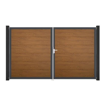 Alle Bestandteile des Tors sind aus hochwertigen Materialien gefertigt, die Wind und Wetter trotzen und garantiert rostfrei sind. Das Tor ist 2-flügelig und wird inklusive Beschlagset geliefert. Das BPC-Profil und der Aluminium-Rahmen machen das Tor besonders witterungsbeständig und langlebig. Zudem ist es pflegeleicht und einfach zu reinigen.