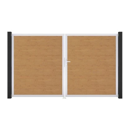 Alle Bestandteile des Tors sind aus hochwertigen Materialien gefertigt, die Wind und Wetter trotzen und garantiert rostfrei sind. Das Tor ist 2-flügelig und wird inklusive Beschlagset geliefert. Das BPC-Profil und der Aluminium-Rahmen machen das Tor besonders witterungsbeständig und langlebig. Zudem ist es pflegeleicht und einfach zu reinigen.