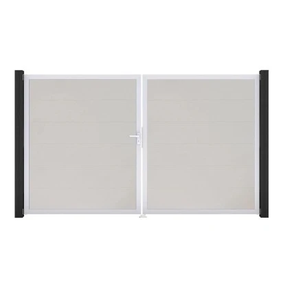Alle Bestandteile des Tors sind aus hochwertigen Materialien gefertigt, die Wind und Wetter trotzen und garantiert rostfrei sind. Das Tor ist 2-flügelig und wird inklusive Beschlagset geliefert. Das BPC-Profil und der Aluminium-Rahmen machen das Tor besonders witterungsbeständig und langlebig. Zudem ist es pflegeleicht und einfach zu reinigen.