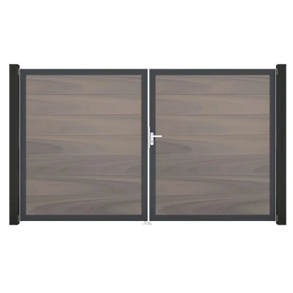 Alle Bestandteile des Tors sind aus hochwertigen Materialien gefertigt, die Wind und Wetter trotzen und garantiert rostfrei sind. Das Tor ist 2-flügelig und wird inklusive Beschlagset geliefert. Das BPC-Profil und der Aluminium-Rahmen machen das Tor besonders witterungsbeständig und langlebig. Zudem ist es pflegeleicht und einfach zu reinigen.