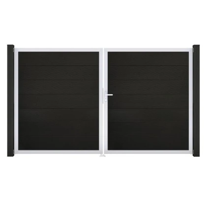 Alle Bestandteile des Tors sind aus hochwertigen Materialien gefertigt, die Wind und Wetter trotzen und garantiert rostfrei sind. Das Tor ist 2-flügelig und wird inklusive Beschlagset geliefert. Das BPC-Profil und der Aluminium-Rahmen machen das Tor besonders witterungsbeständig und langlebig. Zudem ist es pflegeleicht und einfach zu reinigen.
