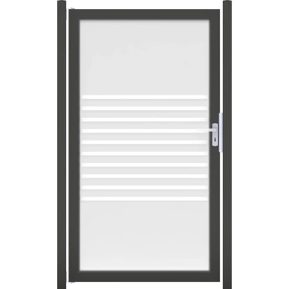 Dieses Tor mit einem Flügel aus Glas mit einem Rahmen aus hochwertigem Aluminium bietet langfristig witterungsbeständigen Schutz. Sämtliches Zubehör, wie Torbänder, Schließblech, Schloss und Griff sind im Lieferumfang enthalten und aus rostfreiem Material gefertigt.