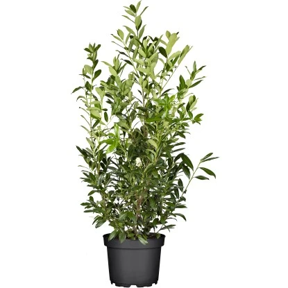 Die Kirschlorbeer-Sorte „Caucasica“ ist mit bis zu 60 cm Zuwachs pro Jahr sehr schnellwüchsig und auch für hohe Sichtschutzhecken geeignet, da sie – ohne Schnitt – bis zu 4 m hoch werden kann. Durch ihren eher aufrechten Wuchs wird sie ungeschnitten meist nicht breiter als 150 cm, kann durch entsprechende Schnittmaßnahmen aber auch auf 50 bis 60 cm Breite gehalten werden. „Caucasica“ ist eine sehr robuste Sorte und für nahezu alle Standorte, auch dunklere, geeignet. Sie hat schmale, länglich geformte Blätter und blüht reichhaltig.