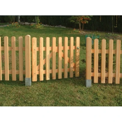 Das Einzeltor Norki im Farbton Natur UV-lasiert besteht aus 14 Latten – Stärke 25 mm x 75 mm und 2 Riegeln – Stärke 30 mm x 75 mm. Latten und Riegel sind durch ihre Form konstruktiv geschützt, da sich kein Stauwasser auf dem Holz bilden kann. Staketenzäune sind zeitlos, elegant und einfach zu montieren. Alle Zaunfelder und Tore sind handwerklich hochwertig verarbeitet und mit rostfreien Rillennägeln befestigt.