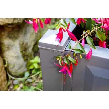 Der quadratische Pflanzkasten besticht durch sein modernes und praktisches Design. Er eignet sich hervorragend für die Bepflanzung mit Kübelpflanzen. Der Kasten ist sehr einfach zu montieren und vielfältig kombinierbar.