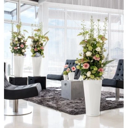 Das schmale Lechuza Pflanzgefäß Delta Premium setzt elegant grüne Akzente mit seiner ausgefallenen Form und besticht durch das bewährte Lechuza Erdbewässerungssystem, das Ihre Pflanzen bestens mit Wasser versorgt. Der herausnehmbare Pflanzeinsatz mit Griffrahmen in Gefäßfarbe ermöglicht ein schnelles Wechseln der Bepflanzung. Im Wohnraum oder im Büro bietet die fließende Gefäßform mit abgerundeten Ecken einen hochwertigen Rahmen für exquisite Pflanzenarrangements.