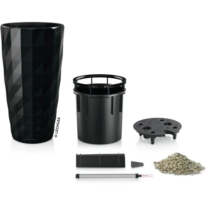 Lechuza Pflanzsäule Diamante Premium Schwarz Hochglanz Ø 40 Cm Bewässerungssys.