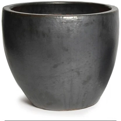 Der M Collections Pflanztopf Glasiert Egg Pot Ø 38 cm x 32 cm in der Farbe Schwarz ist in der klassisch, modernen Ausstrahlung ein echter Blickfang für jede Terrasse, Garten oder Balkon.