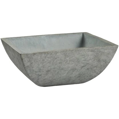 Die Pflanzschale aus der Serie La Rochelle ermöglicht Ihnen, Blumen und Pflanzen im Außenbereich dekorativ in Szene zu setzen. Sie verfügt über ein modernes Design in rechteckiger Form mit breitem Rand. Ihre Oberfläche weist eine marmorierte Struktur in offenporiger Beton-Optik auf. Dadurch erhält das Pflanzgefäß eine natürlich wirkende Gestaltung, die voll im Trend liegt und doch ganz zeitlos ist. Die Schale überrascht mit ihrem leichten Gewicht. Anders als ihre Optik vermuten lässt, ist sie aus robustem und langlebigem Light Zement hergestellt, der aus Fiberglas, Sand, Feinstein und Zement besteht und somit leichter ist als echter Stein.
