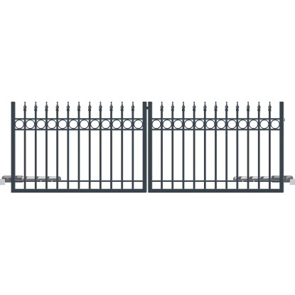 Das Polargos Doppeltor Oxford mit elektrischem Antrieb besteht aus vertikalen Streben und einem Rahmen. Es eignet sich dank seiner geraden Linienführung für klassische Gebäude. Es ist ein System von geschweißten Stahlprofilen. Das Paket beinhaltet Antrieb, 4 x Scharniere und Montagezubehör. Sie müssen 2 x Pfosten mit Nietmuttern und oder 4 x Maueranker kaufen.