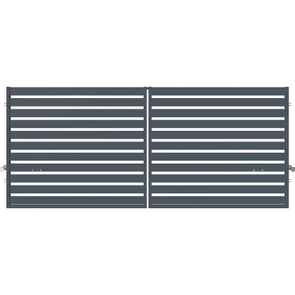 Das Polargos Doppeltor Szafir mit elektrischem Antrieb besteht aus horizontalen Streben und einem Rahmen. Es eignet sich dank seiner geraden Linienführung sowohl für klassische als auch für moderne Gebäude. Es ist ein System von geschweißten Stahlprofilen. Das Paket beinhaltet Antrieb, 4 x Scharniere und Montagezubehör. Sie müssen 2 x Pfosten mit Nietmuttern und oder 4 x Maueranker kaufen.
