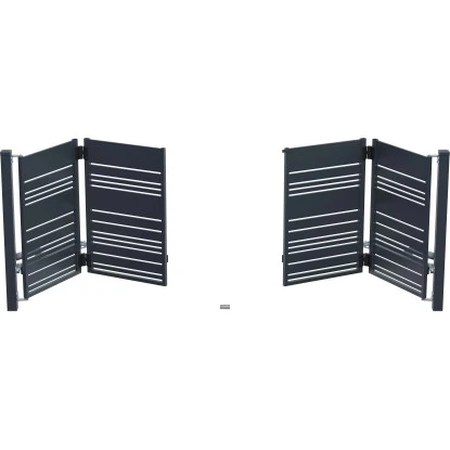 Das Polargos Falttor Lavender mit elektrischem Antrieb besteht aus horizontalen Streben und einem Rahmen. Es eignet sich dank seiner geraden Linienführung auch für moderne Gebäude. Es ist ein System von geschweißten Stahlprofilen. Das Paket beinhaltet Antrieb, Pfosten und Montagezubehör.