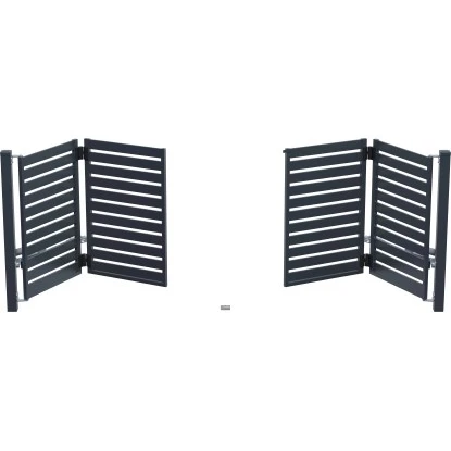 Das Polargos Falttor Szafir mit elektrischem Antrieb besteht aus horizontalen Streben und einem Rahmen. Es eignet sich dank seiner geraden Linienführung sowohl für klassische als auch für moderne Gebäude. Es ist ein System von geschweißten Stahlprofilen. Das Paket beinhaltet Antrieb, Pfosten und Montagezubehör.
