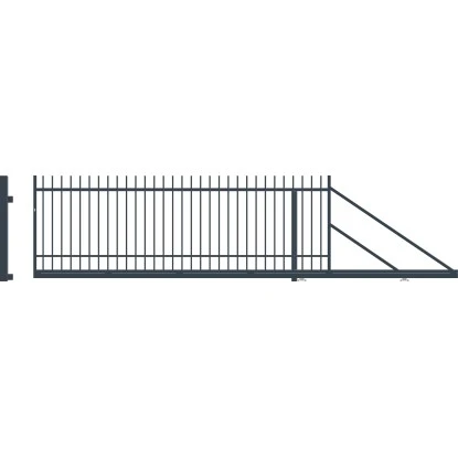 Das Polargos Schiebetor Nicea mit Gegengewicht und Zubehör besteht aus vertikalen Streben und einem Rahmen. Es eignet sich dank seiner geraden Linienführung sowohl für klassische als auch für moderne Gebäude. Es ist ein System von geschweißten Stahlprofilen. Das Paket beinhaltet Hakenschloss, Endpfosten, Führungspfosten und Montagezubehör.