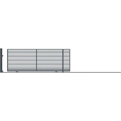 Das Polargos Schiebetor Rubin ohne Gegengewicht mit Zubehör besteht aus horizontalen Streben und einem Rahmen. Es eignet sich dank seiner geraden Linienführung sowohl für klassische als auch für moderne Gebäude. Es ist ein System von geschweißten Stahlprofilen. Das Paket beinhaltet Hakenschloss, Endpfosten, Führungspfosten und Montagezubehör.