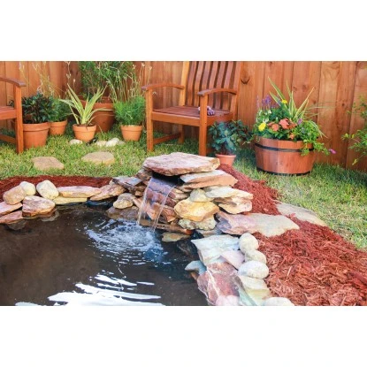 Aus haltbarem, wetterfesten und UV-beständigem Kunststoff, eignet sich die PondoFall Bachlauf- und Wasserfallschütte für Wasserdurchflussmengen von 1000 l/h, 0,000277778 m³/s bis 4000 l/h, 0,00111 m³/s.
