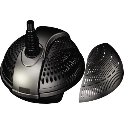 Dabei ermöglichen die abnehmbaren Feinfilterschlitze die Bachlauf- oder Filterspeisung, wobei der integrierte Thermoschutz das Überhitzen verhindert. Ein zweiter separat regulierbarer Abgang dient dem Anschluss weiterer Wasserspiele, um Ihren Gartenteich noch vielfältiger und harmonischer zu gestalten.