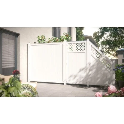 Mit dem Anschlusselement Longlife Riva mit Gitter in Weiß bekommen Sie robusten Sichtschutz für Generationen. Riva vereint klassisches Profil-Design mit langer Lebensdauer. Die Zaunelemente sind enorm stabil durch die stahlversteiften Rahmen und die dicksten Profile aller Kunststoffprofilzäune (24,5 mm). Qualität: „Made in Germany.“